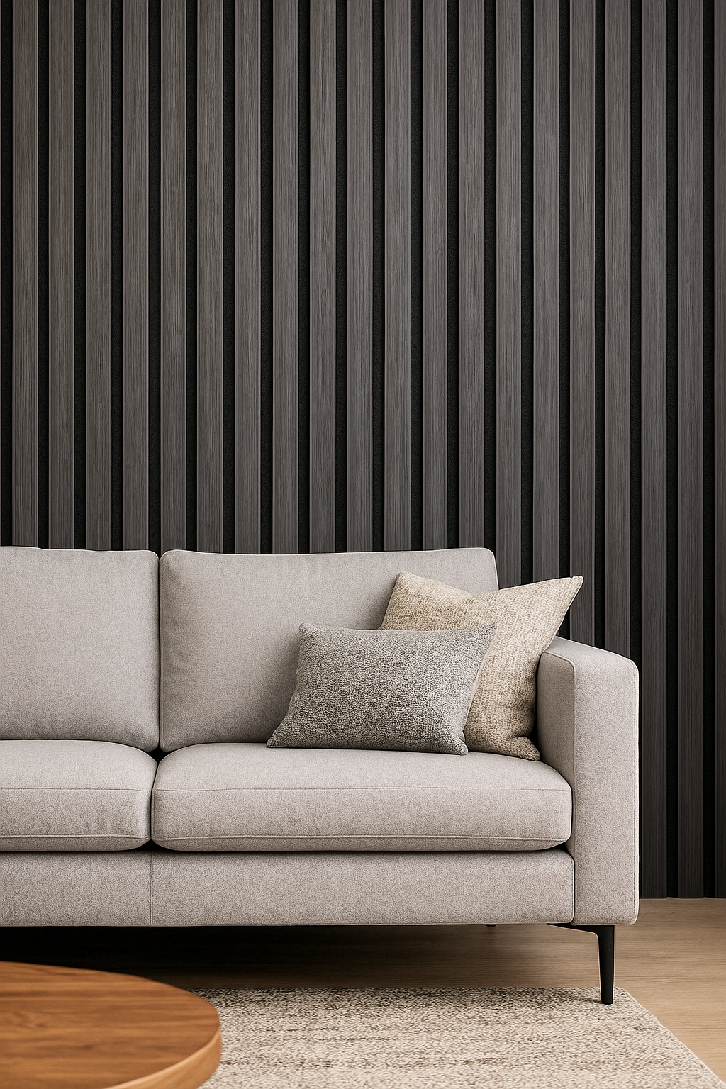 Ламели от MDF, покрити с подсилено PVC фолио с UV защита, задна част с подсилен филц за по-добра акустика