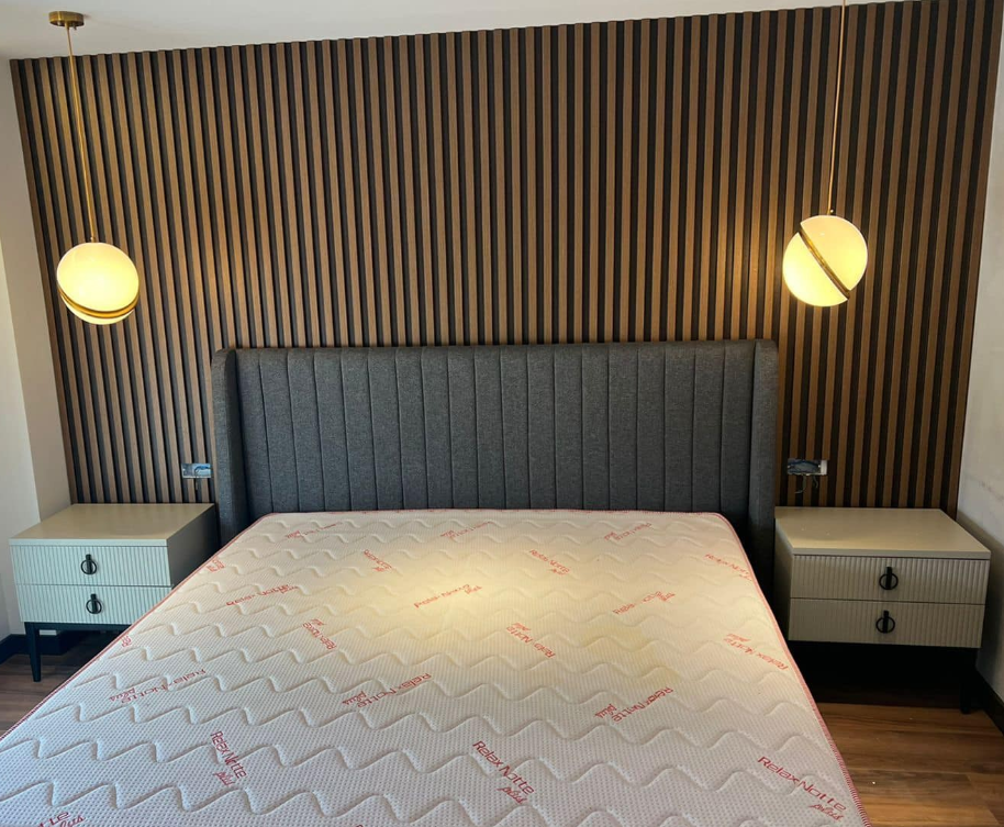 Ламели от MDF, покрити с подсилено PVC фолио с UV защита, задна част с подсилен филц за по-добра акустика