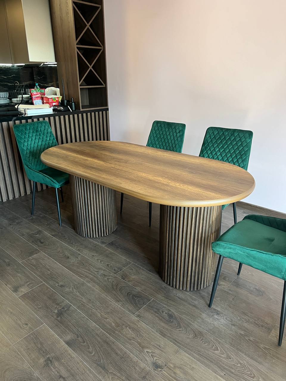 Трапезна маса Елипса Дърво е съвършено съчетание на стил и практичност, създадена с елегантна елипсовидна форма и впечатляваща дървесна имитация. Изработена от висококачествен MDF материал, масата създава усещане за естествено дърво, придавайки топлина и уют на всяка трапезария.